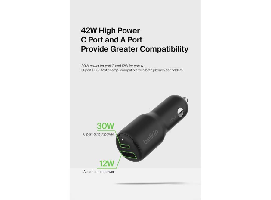 Belkin Dual USB C Car Charger | 42W PD | Black | CCB005QCBK