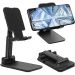 Folding Desktop Phone Stand, Angle Height Adjustable Mobile Phone Holder for Desk, Office, Tablet Stand Compatible with All Phones 4-10 Inches Cell Phone/Tablet (Black)